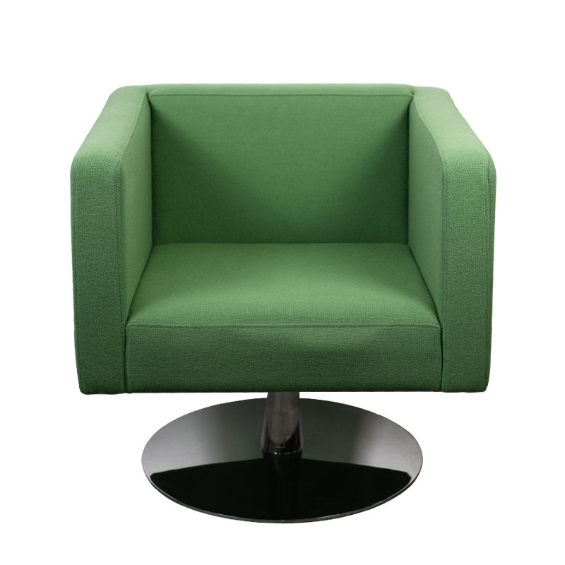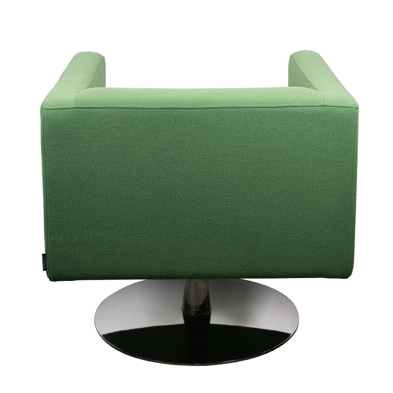 Met zijn compacte formaat en vriendelijke, frisse groene stoffering, straalt de Solitaire rust én persoonlijkheid uit. Het draaibare metalen onderstel maakt de stoel bovendien uiterst geschikt voor omgevingen waar flexibiliteit, interactie en bewegingsvrijheid centraal staan.